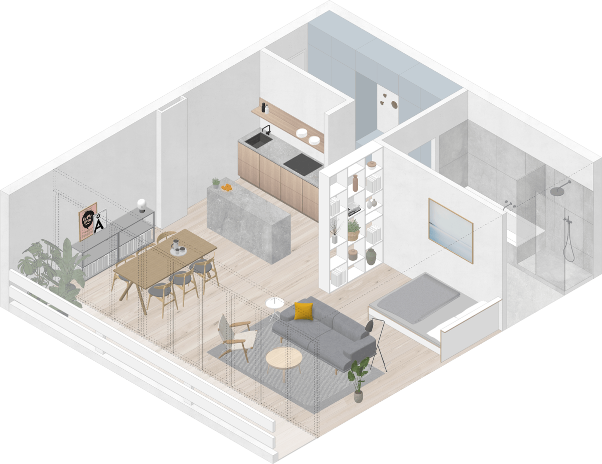 Unsere Idee war, das abgewohnte und verwinkelte Appartement in ein modernes Studio Loft mit urbanem Flair zu verwandeln. Unser Gestaltungskonzept muss wohl einiges auf den Kopf gestellt haben: So sollen Wände gestemmt, Tonnen von Schutt entsorgt und an geeigneter Stelle alles wieder neu aufgebaut worden sein. Auch sind Technik, Heizung und Sanitär auf neusten Stand gebracht.
