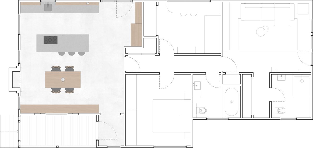 Der Entwurf verbindet funktionale Präzision mit einer zurückhaltenden, warmen Stimmung. Jedes Element ist so angeordnet, dass es Offenheit, Klarheit und alltäglichen Komfort unterstützt.
